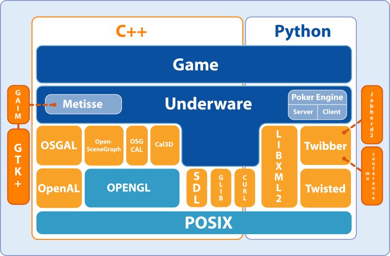 Underware will be a set of Free Software libraries and tools used to produce a 3D online persistent universe.