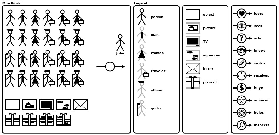 construction kits 2D and 3D models for persons and their activities (block-style figures) and objects